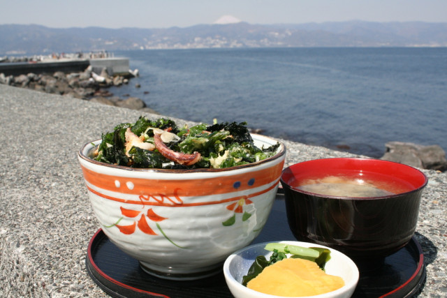 初島区事業協同組合の漁師が営む食堂を中心とした島内の16店舗が、獲れたての地魚やイカ、エビ、伊豆の名産野菜アシタバなど、旬の食材をふんだんに使ったオリジナル丼メニューをご提供します!
