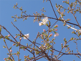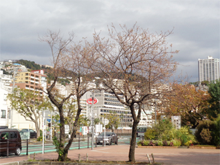 【ヒマラヤ桜】例年11月後半~12月にかけて開花する珍しい品種で、薄いピンク色の美しい花を咲かせます。熱海市では、親木が熱海高校近くの斜面にあり、若木は親水公園・月見ガ丘公園・さくらの名所散策路・長浜海浜公園などに点在しています。