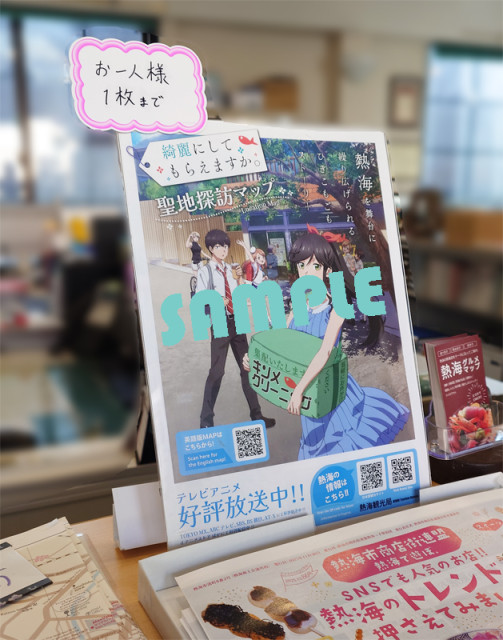2026年1月より好評放送中の、熱海を舞台にした大人気ひきこもごもストーリー「綺麗にしてもらえますか。」(掲載 「ヤングガンガン」 スクウェア・エニックス刊)の作中に登場する様々なスポットを掲載した、熱海市聖地探訪マップが製作され、駅ビル「ラスカ熱海」内にある「熱海観光案内所」や、親水公園内「熱海市観光協会」などで、配布しています。