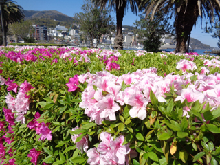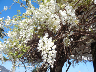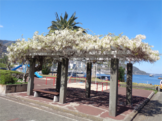 本日4/8(水)撮影 サンレモ公園のフジの様子です。白と紫の藤棚がありますが、白い方が見頃になりました。紫は開花し始めです。ツツジも色づいていますので、近くにお越しの際にはぜひご覧ください。【サンレモ公園】住所/和田浜南町(熱海港隣)