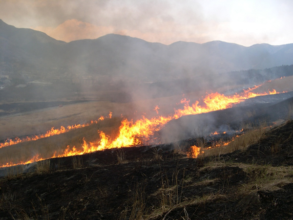 夏から秋にかけて、草原いっぱいに金色色のパノラマが広がるほか、盛夏の青々としたススキが天高く伸びた様子、野の花とのコントラストなど、四季折々の表情が見る者の目を楽しませます。また、景観を守るために毎年春に実施される豪快な山焼きも壮観です。