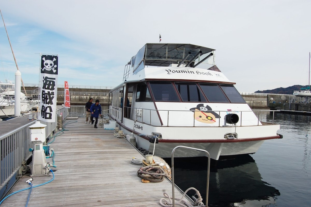 道の駅伊東マリンタウンから出港し、半潜水式海中展望船である「ゆーみんフック」にて、遠く初島を望みながら手石島や川奈沖を巡る、約45分のクルージングです。カモメに餌付けをしたり、海底をのぞき込んだり、時にはイルカやトビウオなどに出会いながらの冒険の旅!