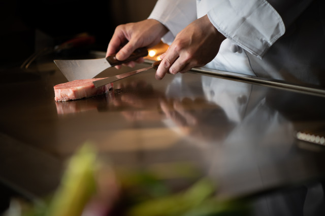 目の前で音を立てて焼ける肉や魚介、鉄板から立ち上る香り、焼き手の見事な手捌きと仕草が、心躍らせてくれることでしょう。