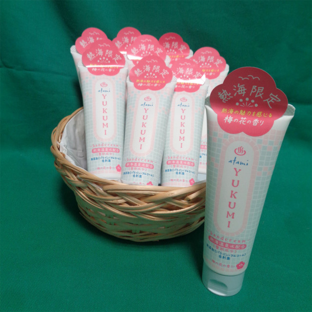 指先までしっとり滑らかに保湿、熱海梅園にちなみ梅の香りを配合しているので、ほんのり甘い爽やかな香りが広がり、リラックス効果も。手肌だけでなく心を癒す商品として開発されました。