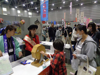 熱海温泉のブースではミス熱海梅娘:小竹も参加し「海の熱海」をPR!アンケートに回答いただいた方を対象に、菓子やみかん等の名産品が当たる抽選会を実施し、多くの方にお立ち寄りいただきました。