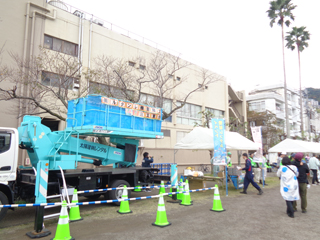 会場では自衛隊や警察・消防の車両展示や、熱海警察署・熱海市消防本部・下田海上保安部の各展示ブースが並びました。また、煙体験ハウスや消火体験など各種体験コーナーも設置され、小さなお子様連れのご家族が多数来場していました。